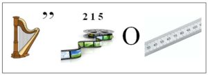 У учителя в руках сумка, в которой: маска, венок из оливковых веток, буква.